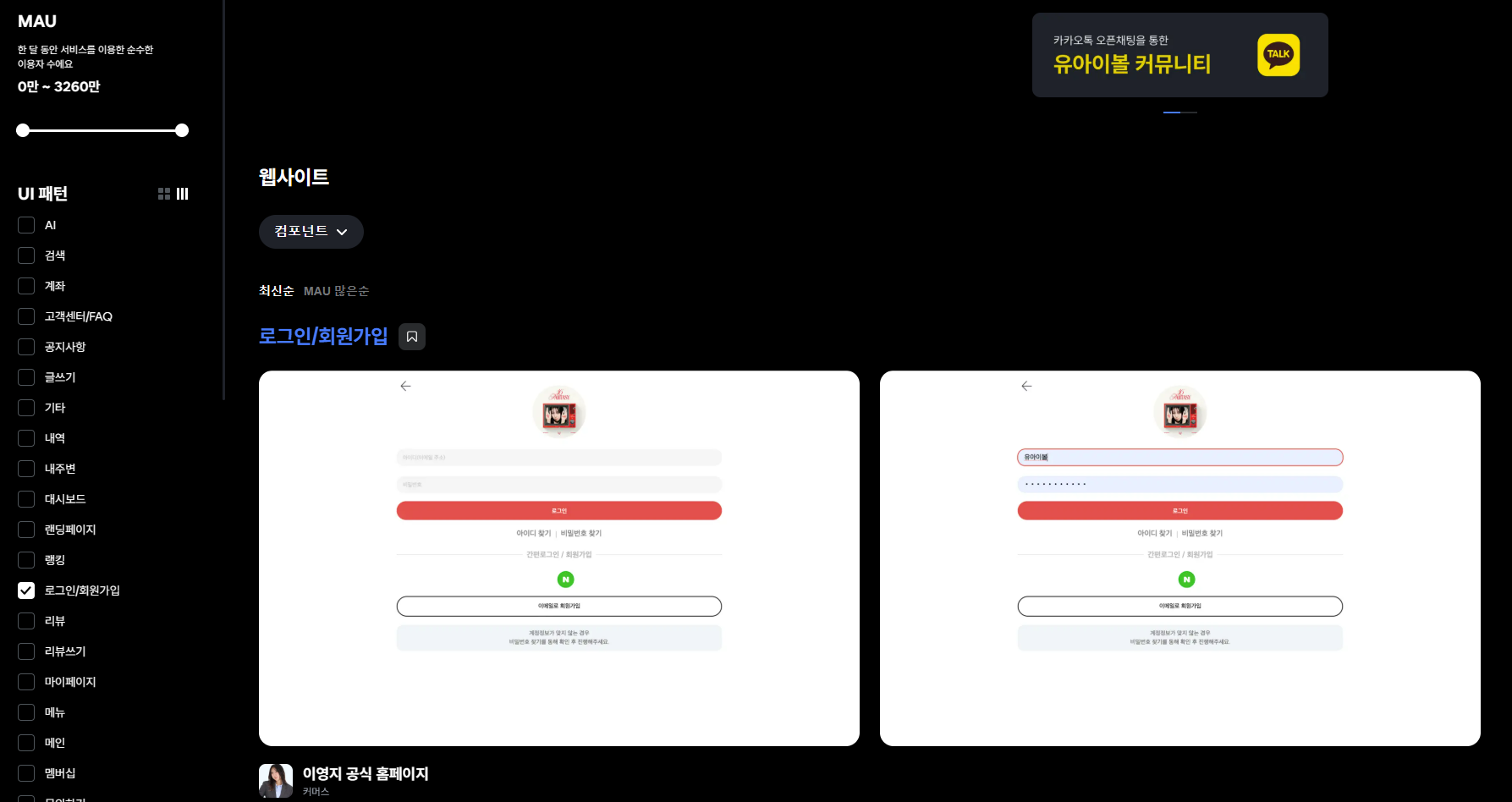 하나하나 UI패턴별로 뜯어서 볼 수 있는 예시들이 올라오고 있고